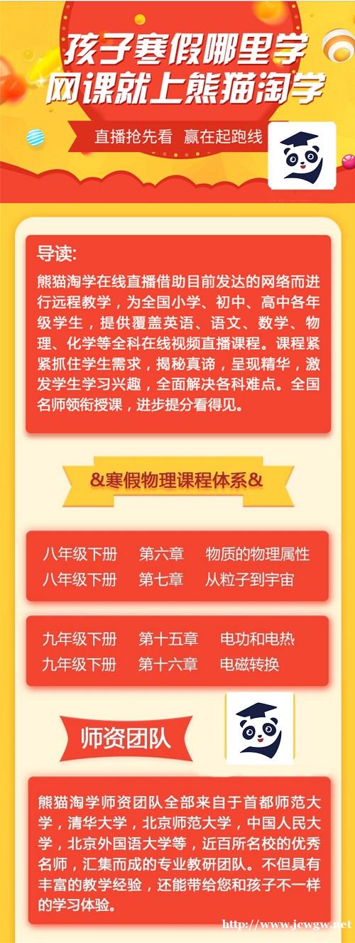除了物理,熊猫淘学针对寒假还会上线语文、数学、英语、化学等科目直播课,App上现在还有小初高各年级各科目的录播课程。课程内容后续也会更加丰富的。快来报名吧~